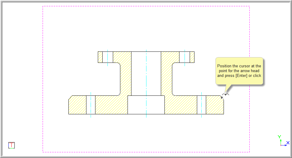 This function allows you to add a leader (arrow), by indicating the position for the arrowhead and then indicating the position for the leader line(s).