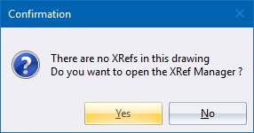 The XRef Manager allows you to edit the list of linked drawings. If no drawings have been added, you will be prompted to open the XRef Manager in order to add the required files to the list. If files have already been added, you will be prompted to indicate the XRef insertion point.