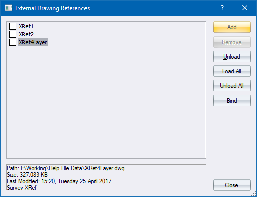 The XRef Manager displays. Click Add to display the file browser.