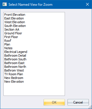 Select the named viewport to view and click OK. Alternatively, the first nine views in the viewport list are assigned zoom hot-keys from 1-9.