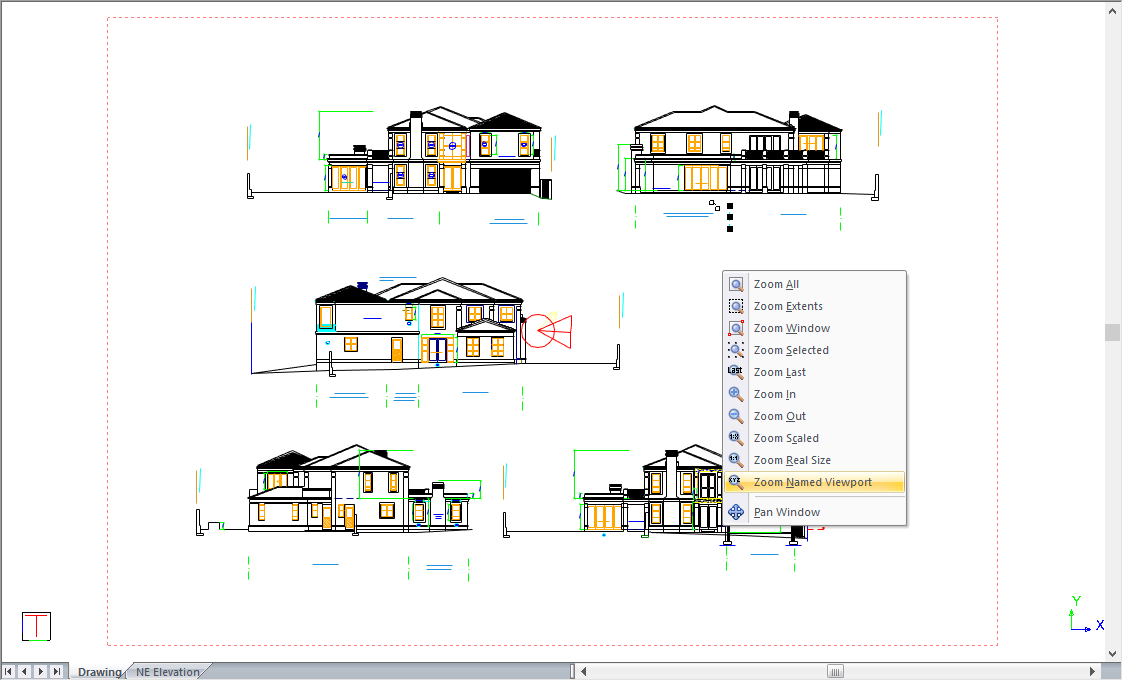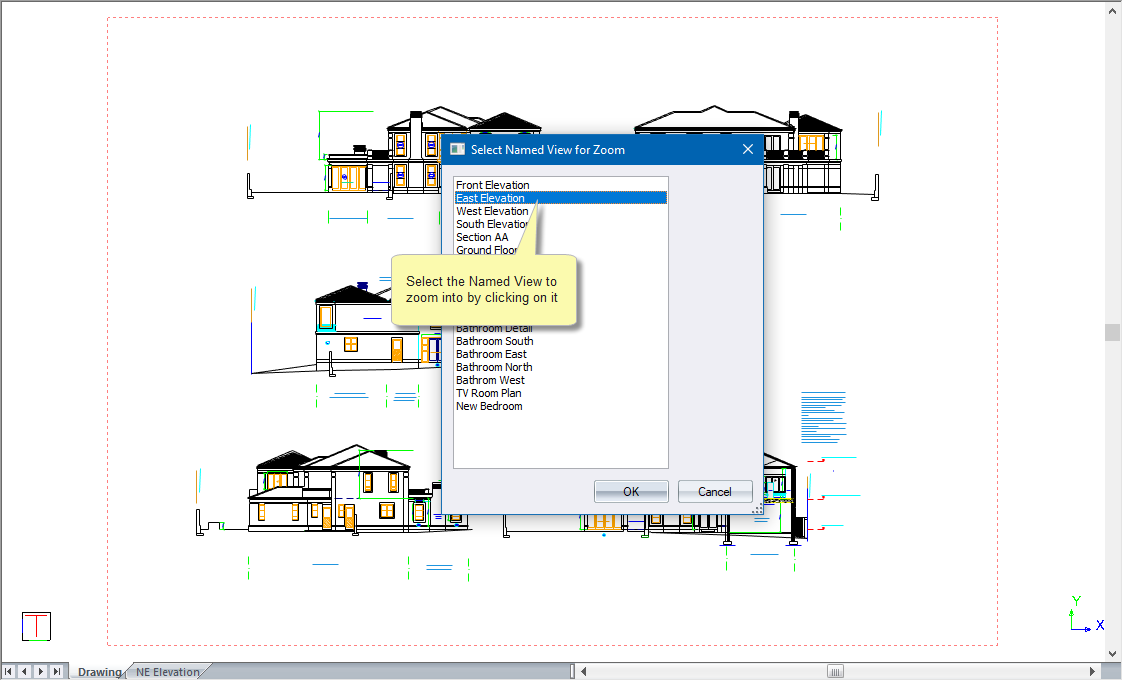 Any named views defined in the drawing display in the Select Named View for Zoom window.
