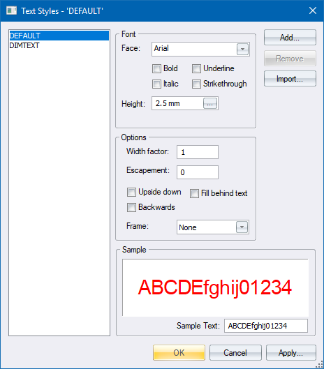 Using mm or inches as the units tells AllyCAD to print the text at a fixed size on paper regardless of scale.