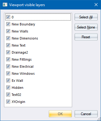 Specify which layers must be displayed. These layer visibility settings are independent of the layer settings of the drawing space. |