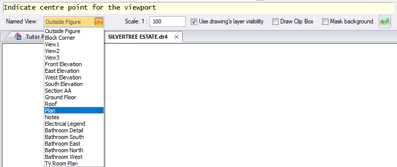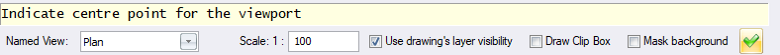 If you select Named Viewport, the program creates the layout and displays the insert viewport options. Select the Plan viewport from the dropdown list and set the scale to 1:100.