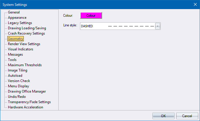 Specify the pen colour and line style for geometry lines.