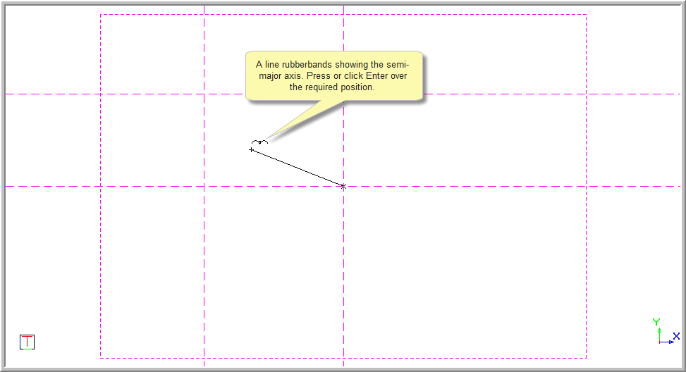 A line rubberbands showing the semi-major axis.