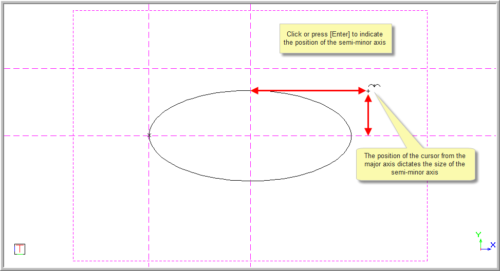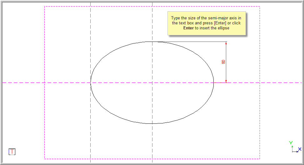 This function allows you to draw an ellipse by entering the centre point, semi-major axis and semi-minor axis.