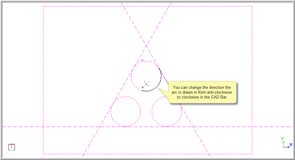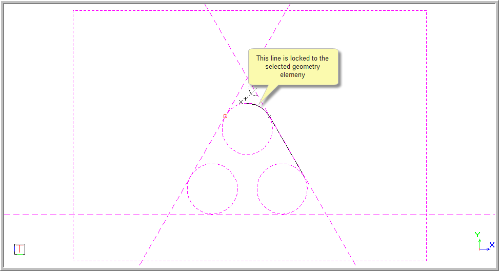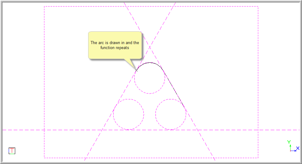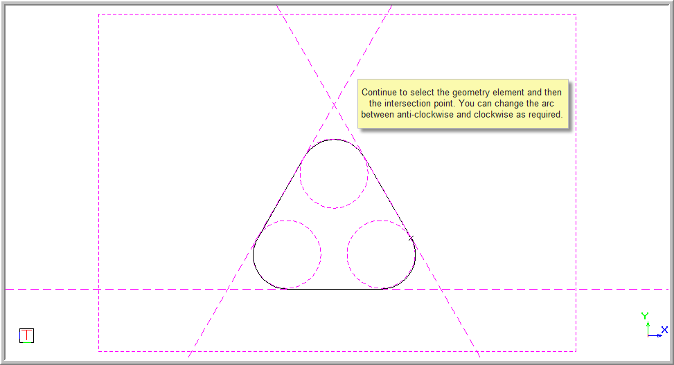 This function allows you to trace over geometry arcs and line elements by indicating the geometry element to be traced, and then indicating the start and end points of each geometry element. The end point of one entity becomes the start point of the next.
