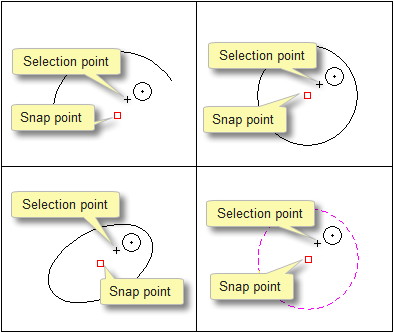 Compare this with Nearest Entity Centre Point snap mode, which finds the nearest entity and snaps to the centre point of that entity if appropriate.